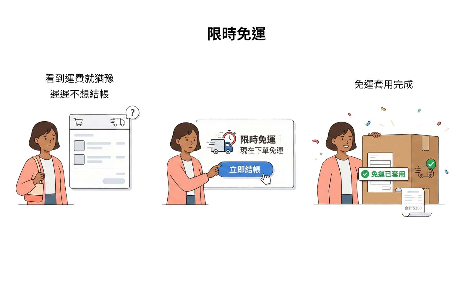 限時免運的目的,不只是省下運費,而是為顧客提供一個明確的行動理由,讓顧客立即下單。