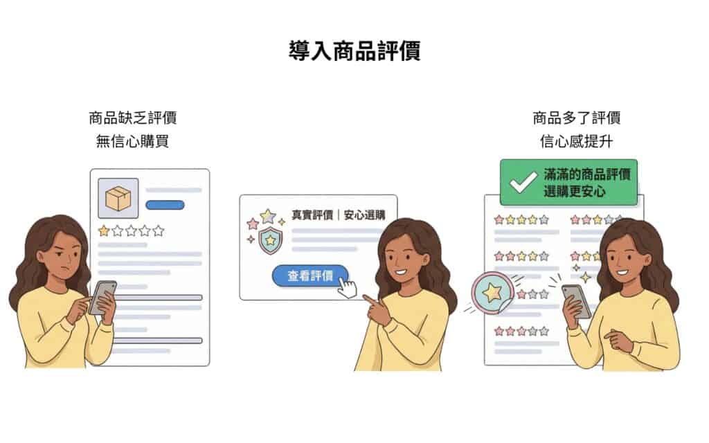 新客在購買前最在意的往往不是價格,而是「別人用得如何」。當商品頁累積足夠的真實評價,就能有效降低不安感並提高轉換率。若再搭配合適的評價獎勵(購物金或積分),還能夠加速評價累積速度,讓口碑更快形成。