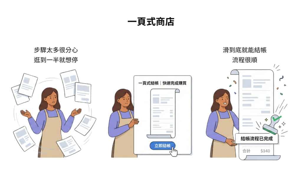 當行銷主打商品促銷或方案時,多頁面的品牌官網反而容易分散注意力。而一頁式商店能將介紹、說服與結帳集中在同一頁,大幅降低流失率,特別適合搭配廣告導流或快閃檔期。